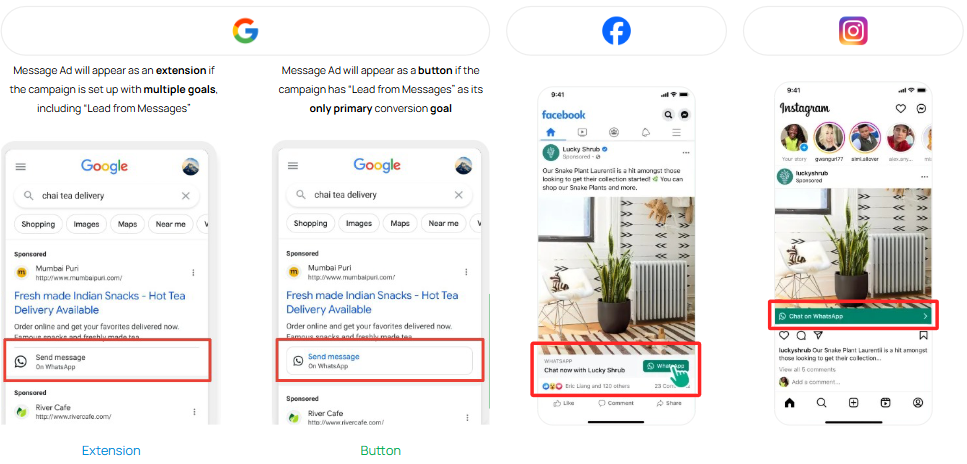 Click-to-WhatsApp Ads – Engage users directly from Google & Meta Ads.